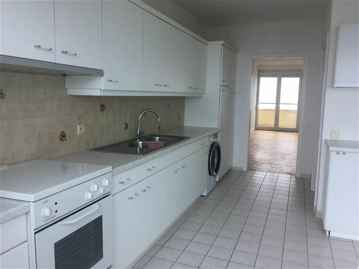 Ruime Inkomhal met vestiaire / wc / living met eetplaats (30m²) met toegang tot balkon / ruime super-ingerichte keuken voorzien van wasmachine (16m²) met toegang tot terras (met mooi verzicht) / badkamer met wastafel en inloopdouche / 2 slaapkamers (4,2 x 3,4m; 3,4 x 3,4m).