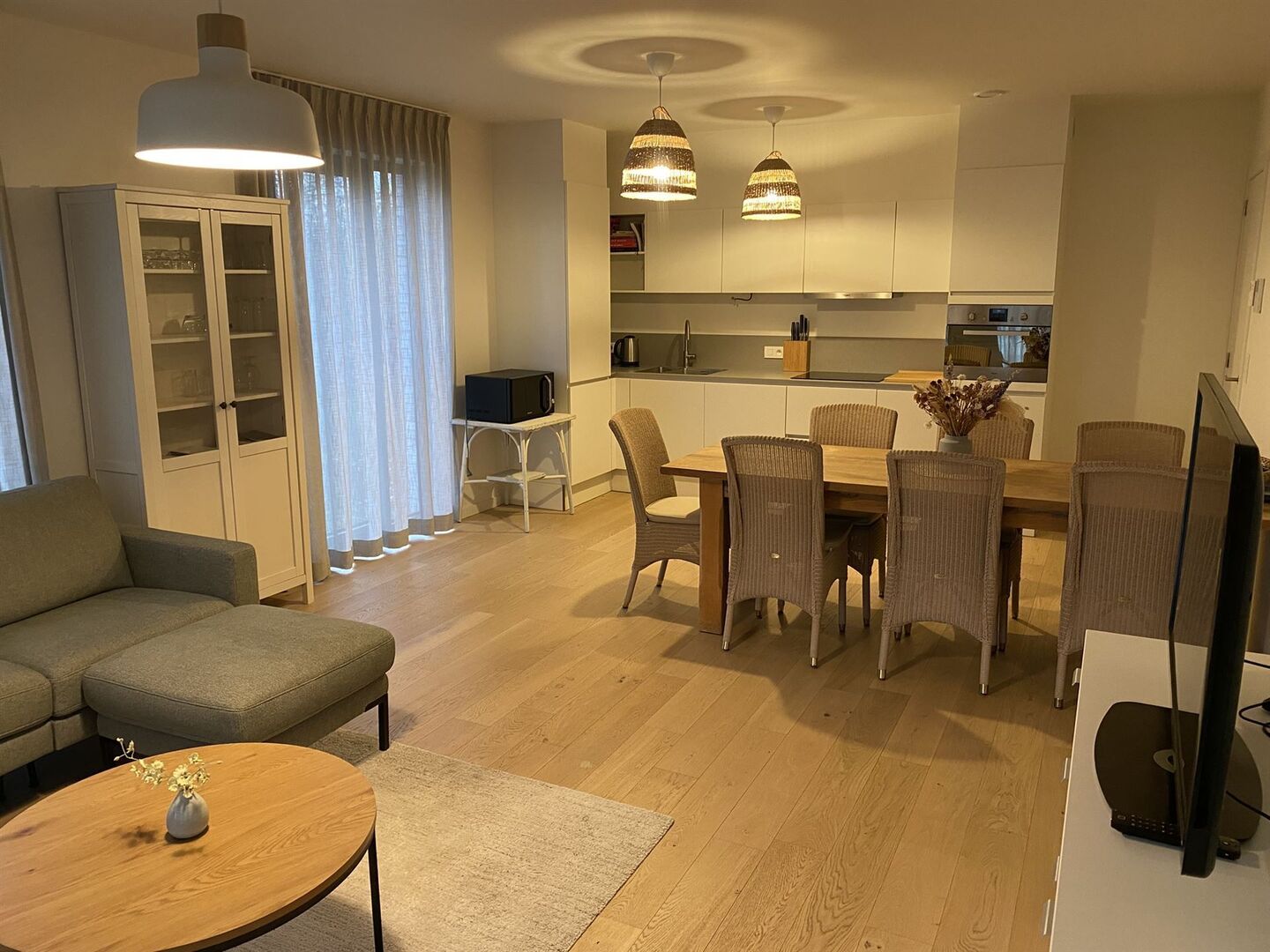 Appartement is voorzien van vloerverwarming (via geothermische warmtepomp), hoogwaardige materialen, parket, raamdecoratie en lichtarmaturen.