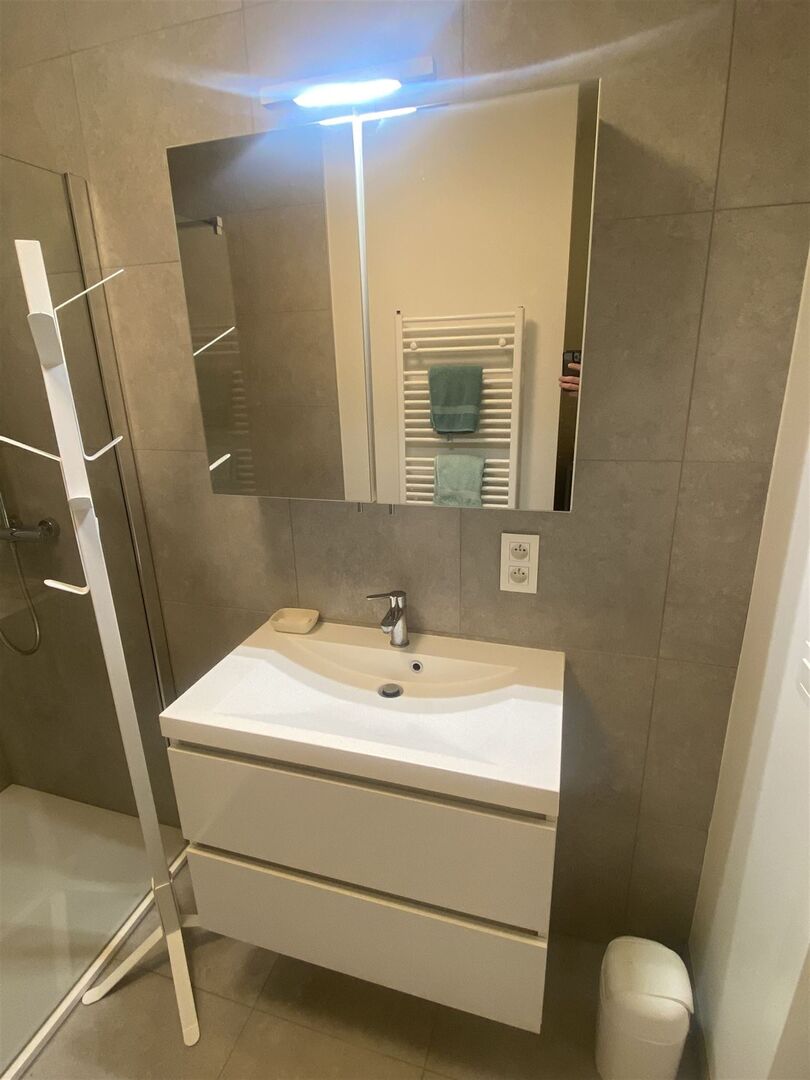 KWALITATIEF, HOOGWAARDIG AFGEWERKT, ENERGIEZUINIG EN LUMINEUS APPARTEMENT MET 2 SLAAPKAMERS, ZUIDWEST-GEORIËNTEERD TERRAS 14M², BINNEN-AUTOSTAANPLAATS, KELDER EN AANGENAME BINNENTUIN.