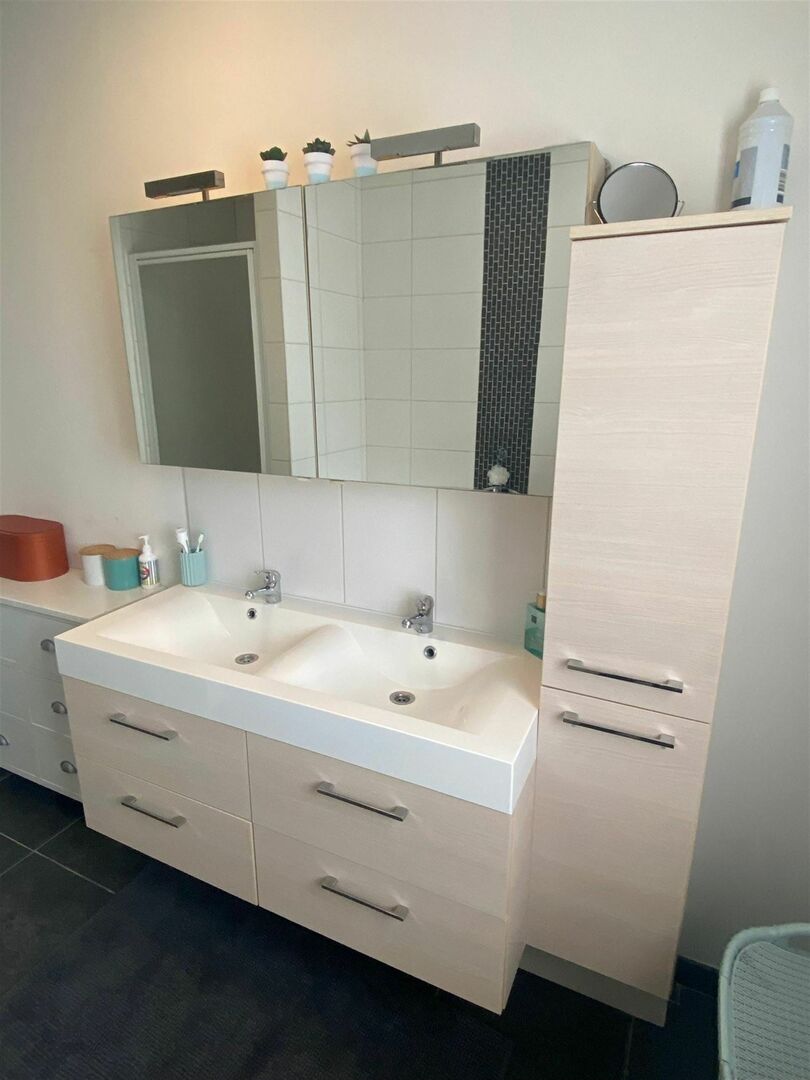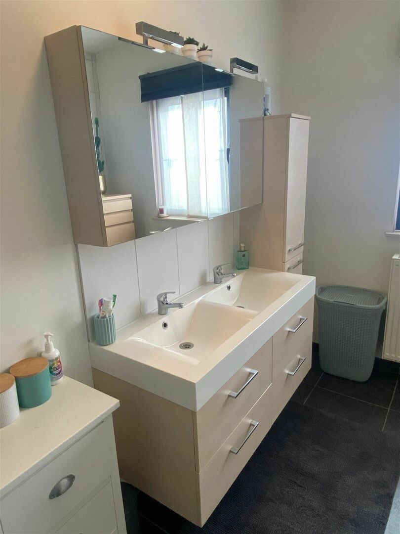 Inkomhal / wc met handwas / living met eetplaats (31m²) met toegang tot terras (6m²) / ruime en ingerichte keuken (19m²) / berging met was- en stookplaats / nachthal / 2 slaapkamers (4,4 x 3,5m; 13m²) / grote badkamer (8m²) met dubbele wastafel, ligbad en douche.