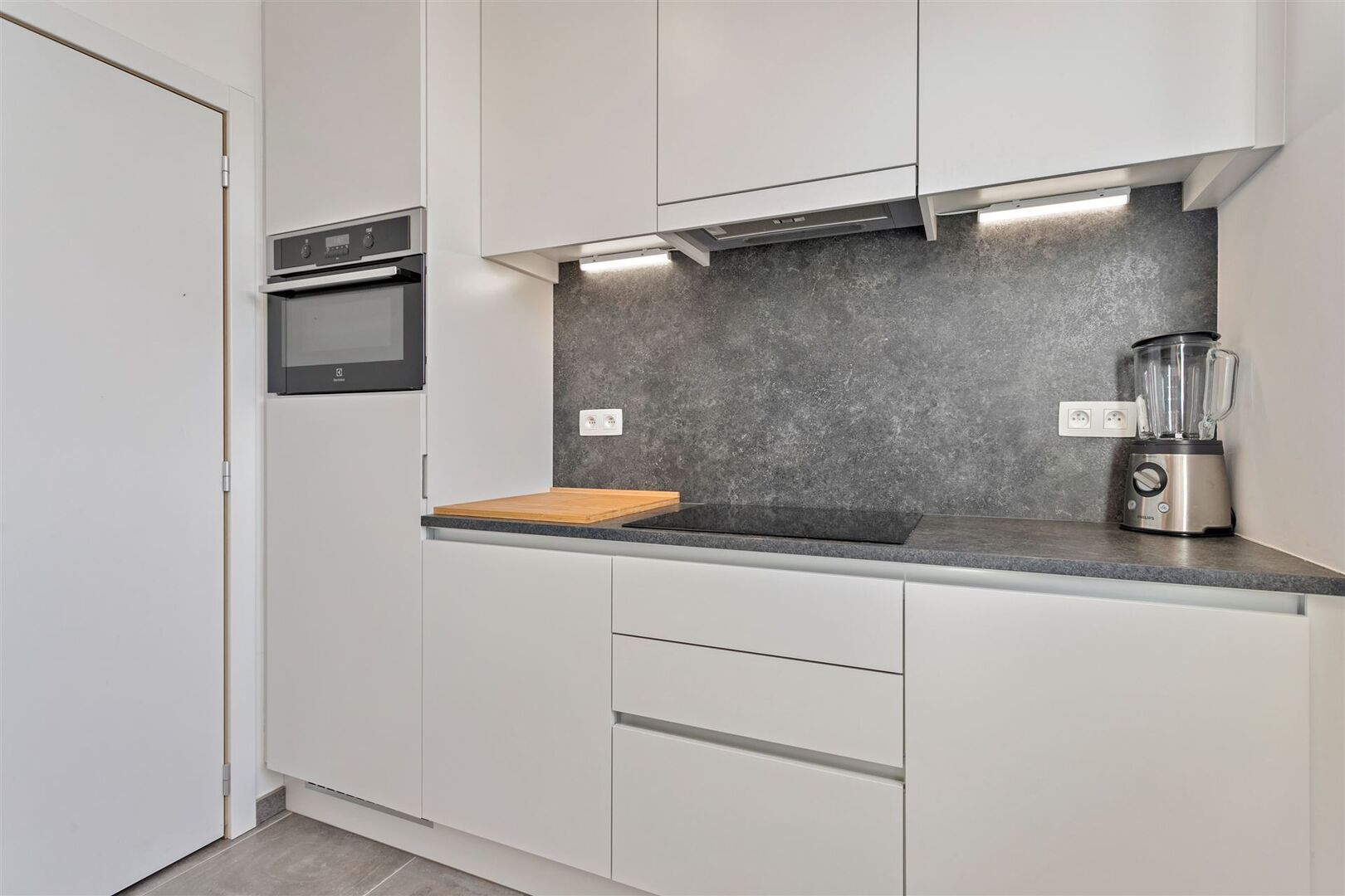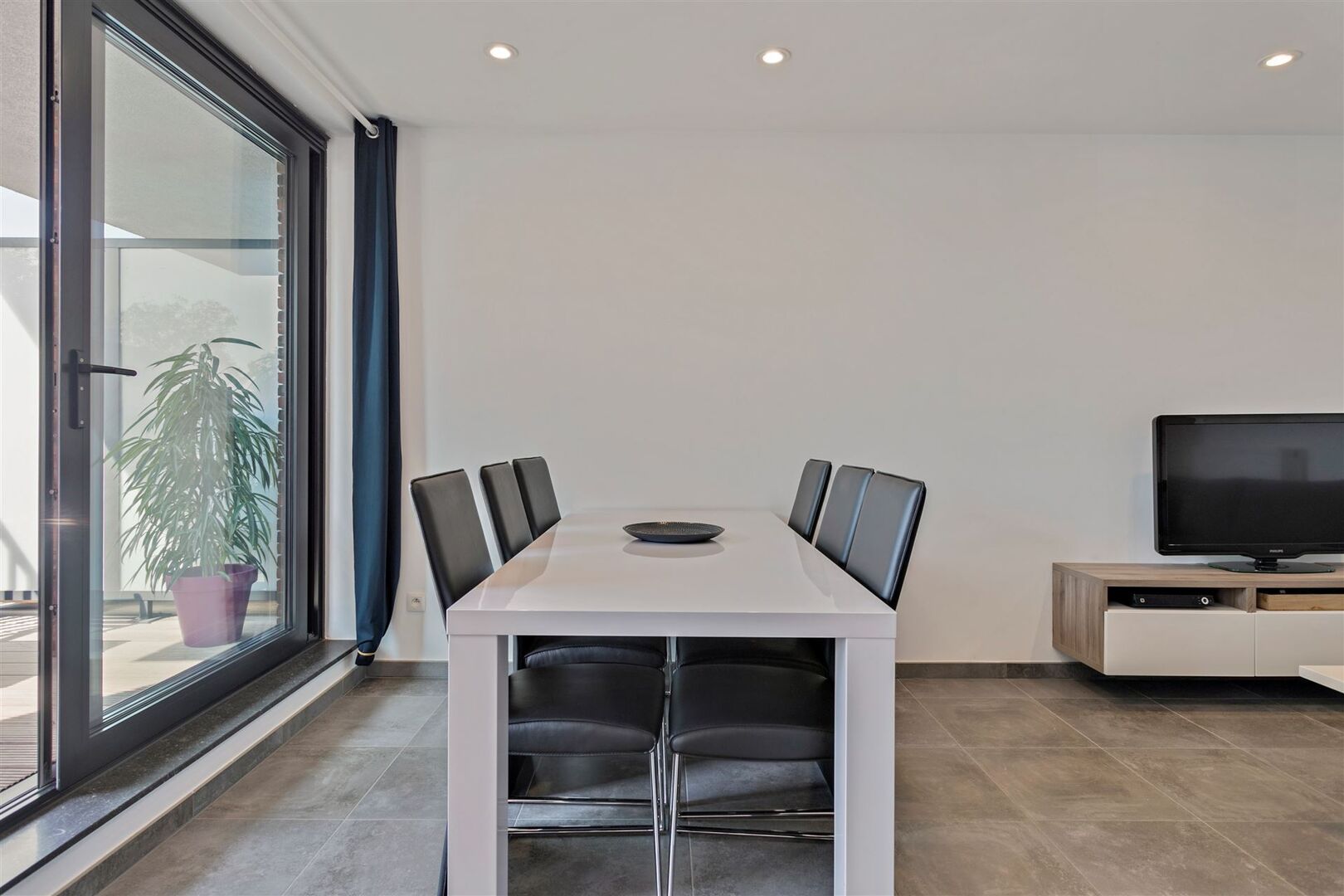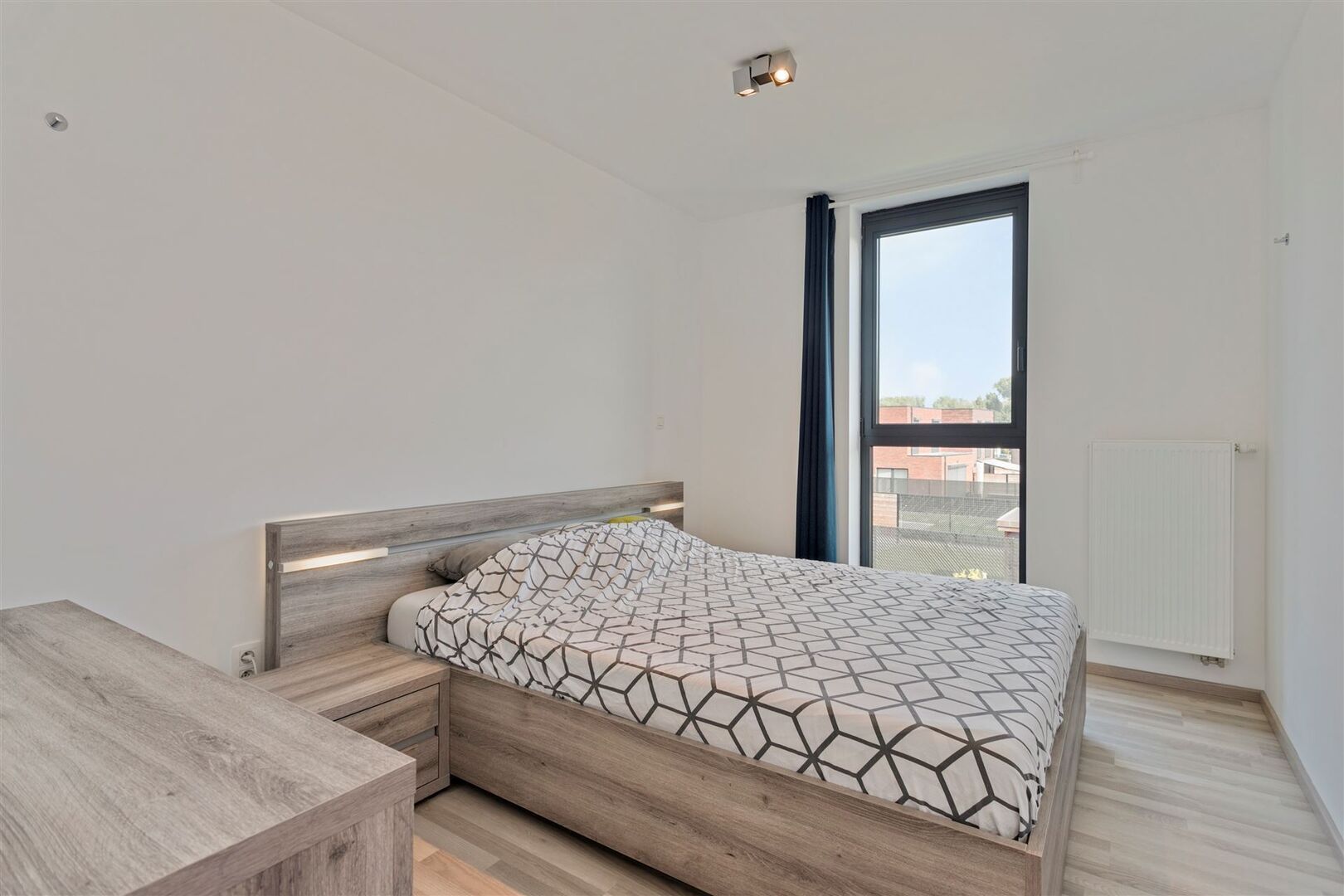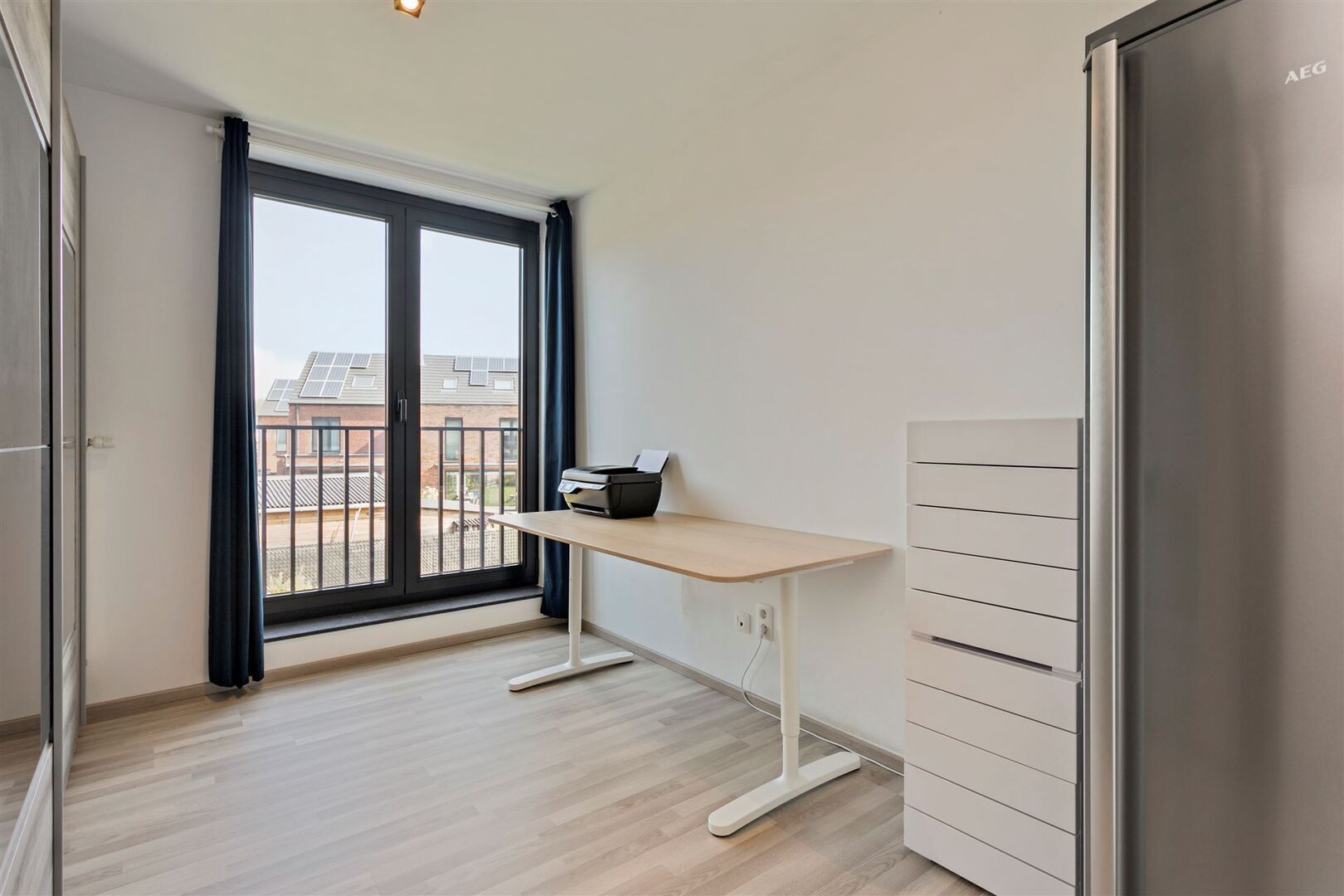 Appartement is voorzien van 3 zonnepanelen, raamdecoratie en lichtarmaturen.
