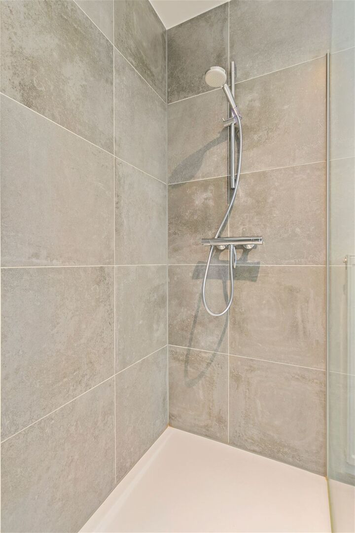 Living met eetplaats met toegang tot zuidwest-georiënteerd terras / super-ingerichte keuken / berging met was- en stookplaats / nachthal / wc met handwas / 2 slaapkamers (3,7 x 2,8m; 3,7 x 2,8m) / badkamer met dubbele wastafel en inloopdouche.