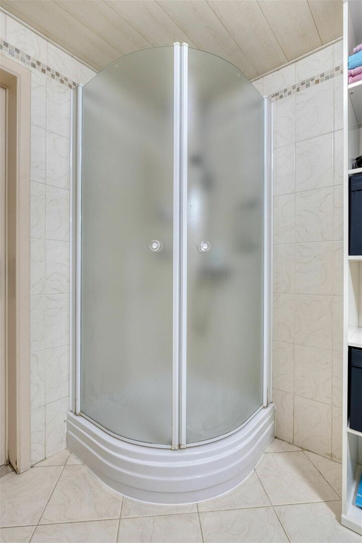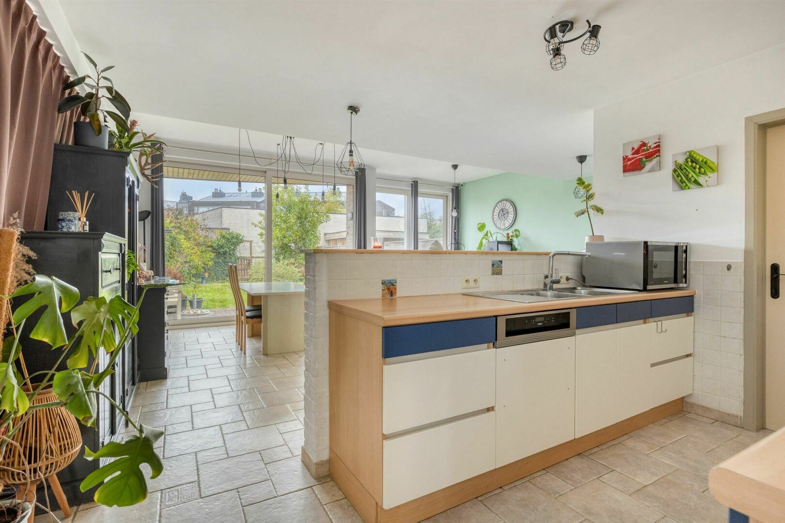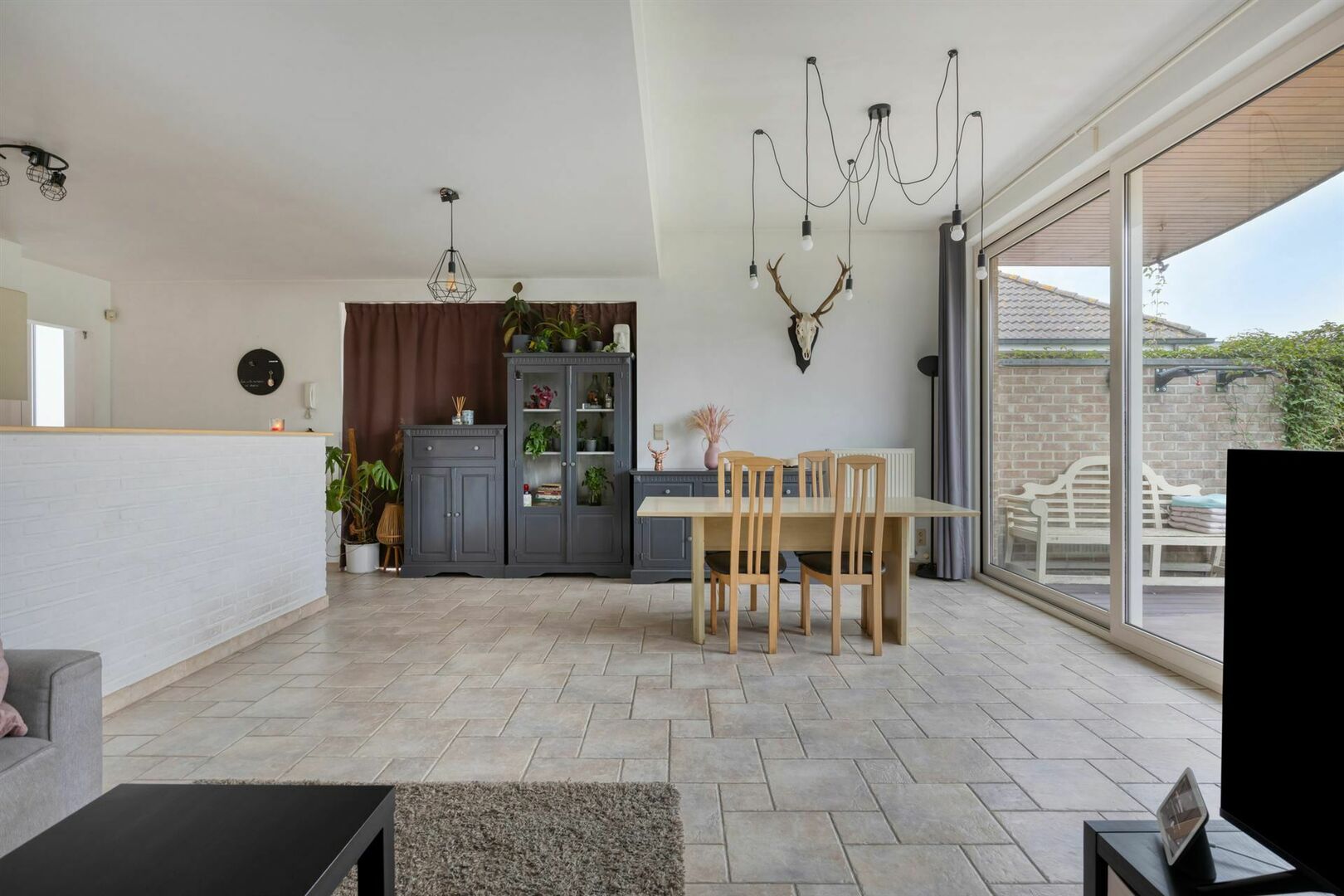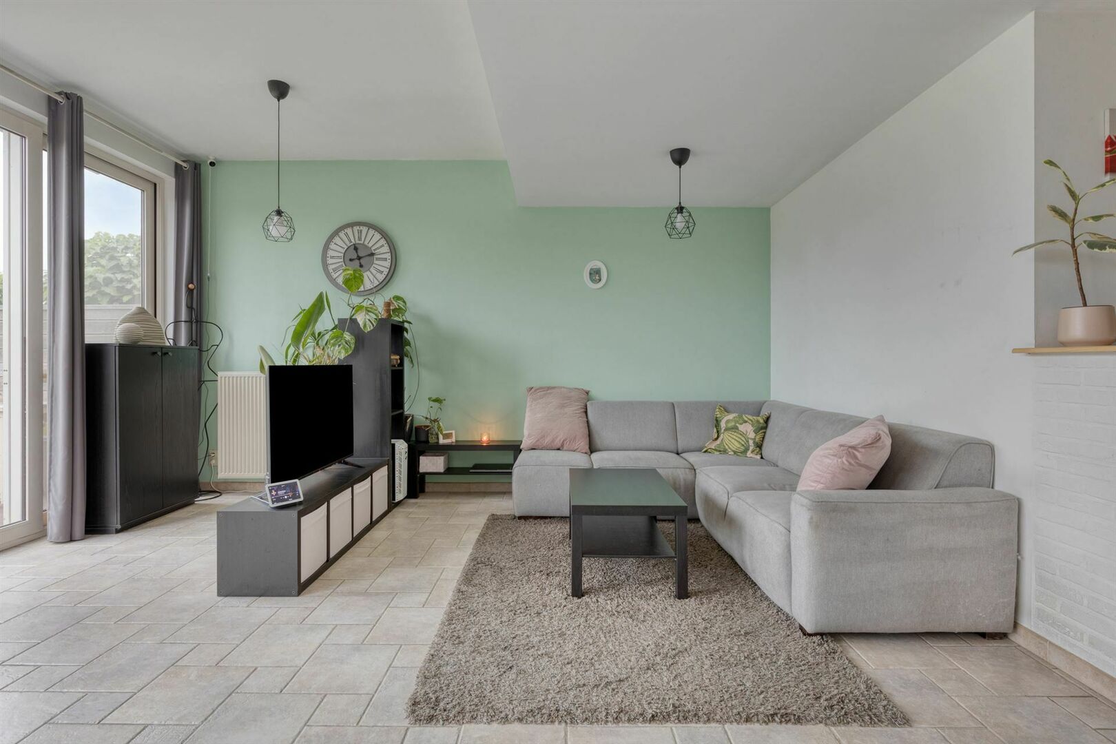 Inkomhal met vestiaire / wc met handwas / aangename living met eetplaats en salon met zicht op tuin en prima uitgeruste, open keuken met gasvuur en vaatwasser (41m²) / berging - wasplaats / ruime slaapkamer (4,6 x 4m) met inbouwkast / badkamer met wastafel en douche.