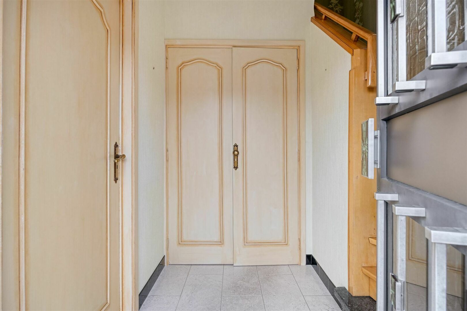 Gelijkvloers: Inkomhal met vestiaire / living met eetplaats (7,2 x 3,7m) / keuken (3,7 x 2,2m) / wc / garage (5,5 x 2,6m) met aangrenzend wasplaats.