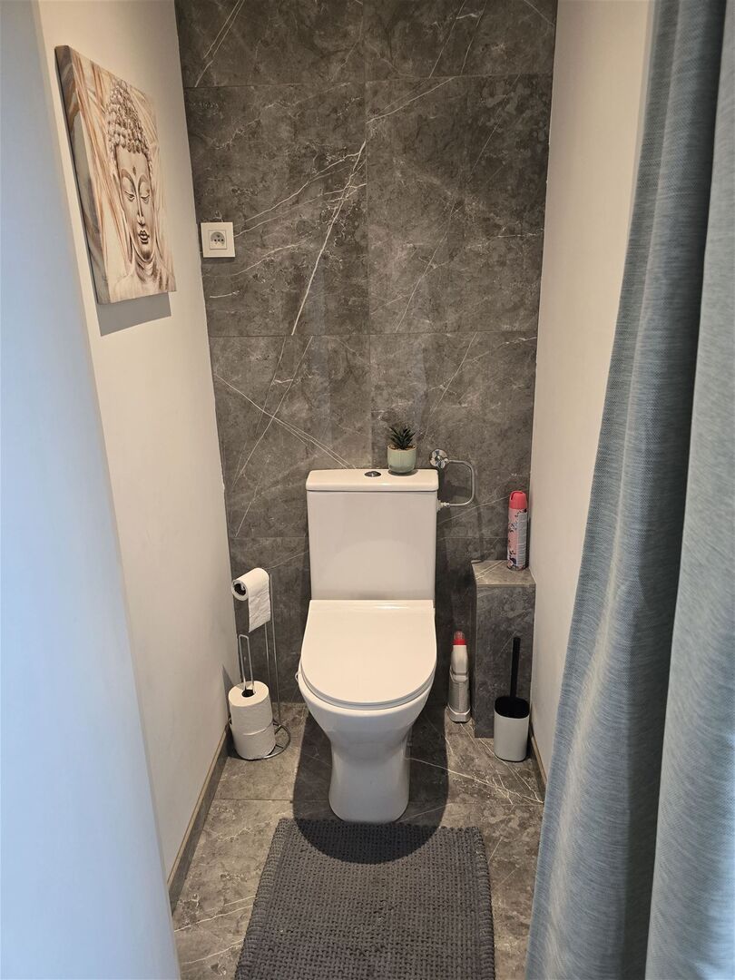 1ste verdieping: Nachthal met toegang tot dakterras (19m²) / wc / slaapkamer (3,8 x 3,4m) / bureau.