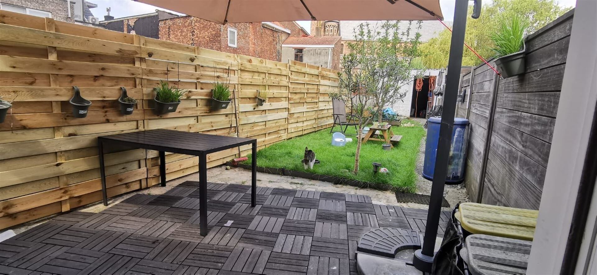 Tuin met terras / garage-fietsenberging (6,6 x 2,9m) (bereikbaar via erfdienstbaarheid achteraan perceel).