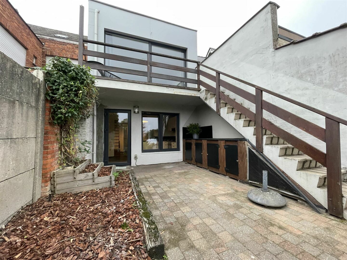 1ste verdieping: lumineuze leefruimte (6,5m x 4,1m) die uitgeeft op balkon / ruime slaapkamer (3,93m x 3m) / badkamer voorzien van ligbad met douchemogelijkheid en wc.