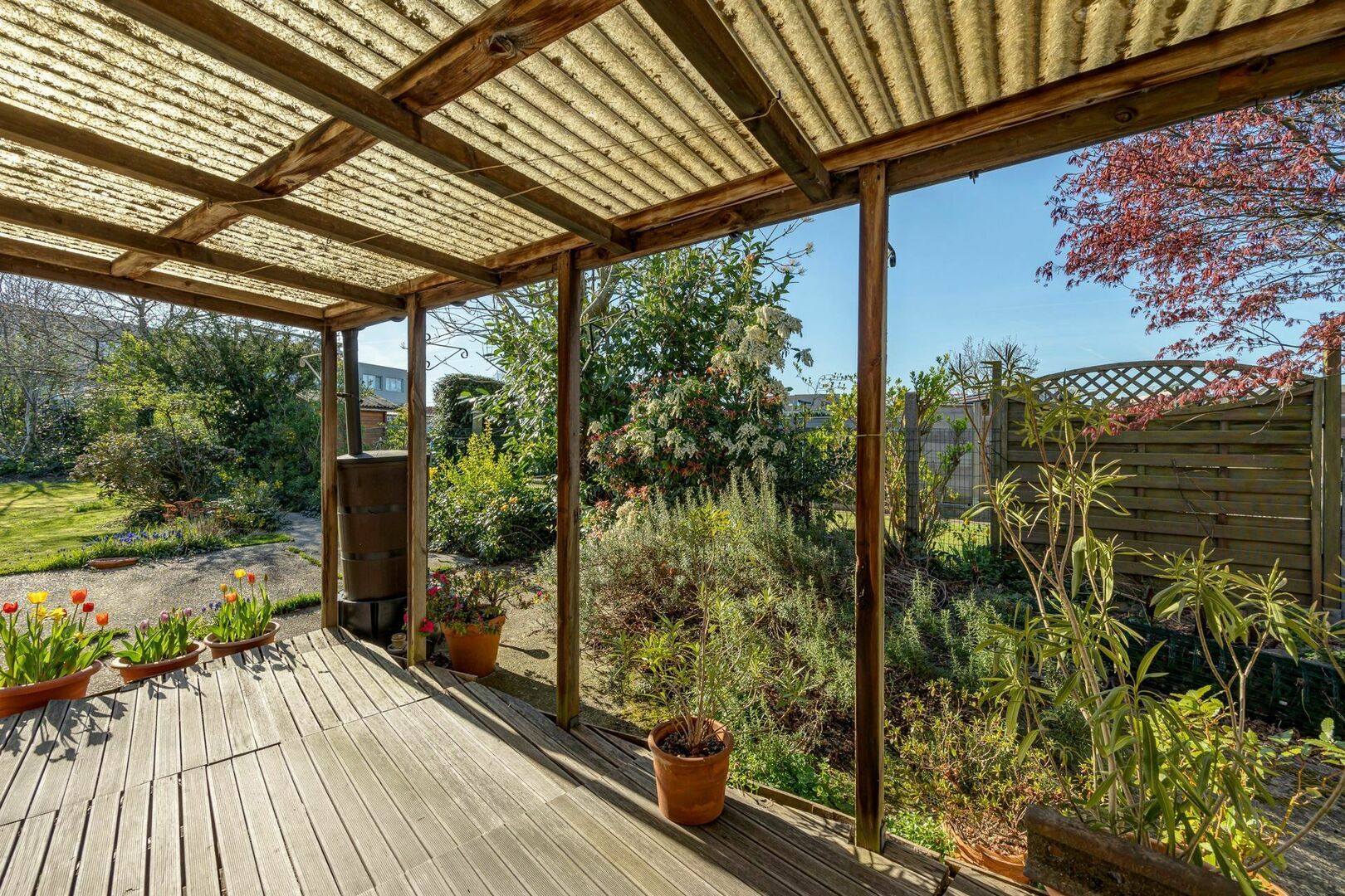 Aangename en grote tuin met zuid-oostelijke oriëntatie, waar mogelijk ook nog een grote bijkomende garage kan worden vergund (bereikbaar via achtergelegen straat Flierke)