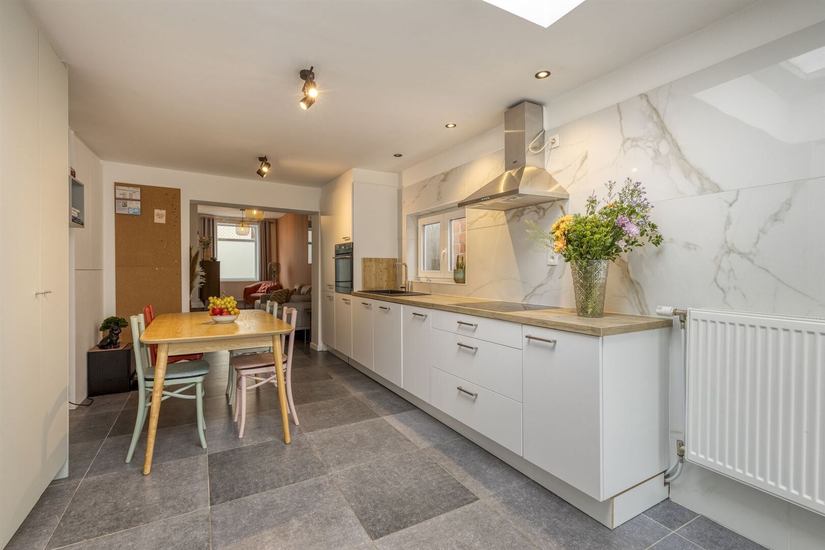 Het energiezuinig huis werd grondig gerenoveerd en beschikt o.a. over een volledig geïsoleerd dak, condensatieketel, conforme elektrische installatie.