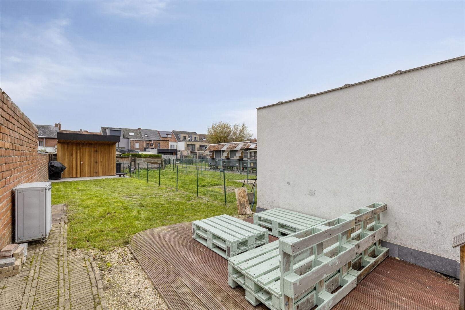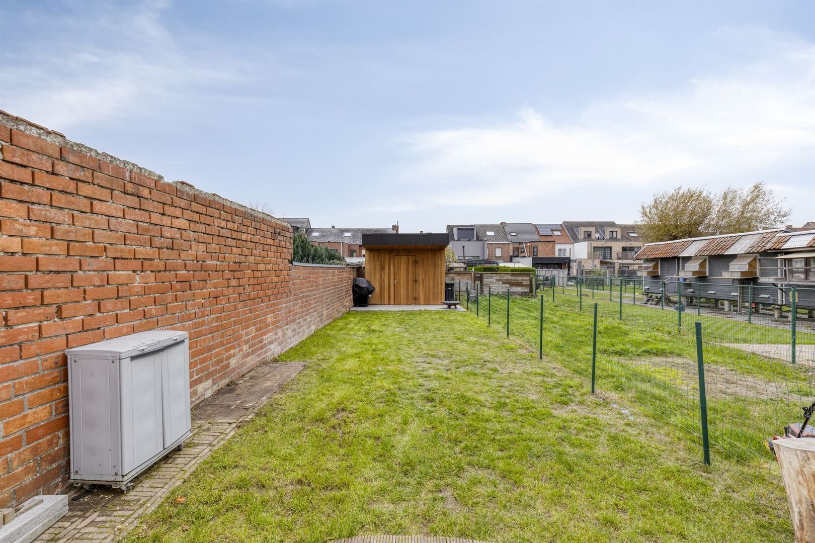 Aangename tuin met westelijke oriëntatie en recent tuinhuis.