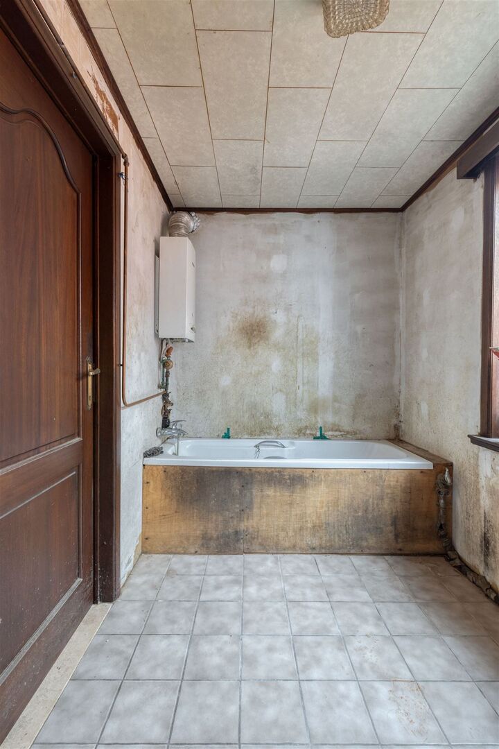 Gelijkvloers: Inkomhal / aangename en ruime leefruimte (37m²) / eetruimte (20m²) / keuken (14m²) / badkamer met bad en wc.